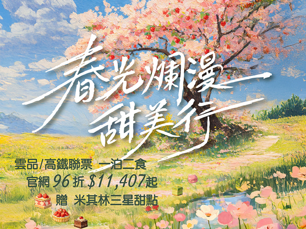 即日起,凡於官網限定頁面預訂雲品指定住房專案,加購高鐵聯票 >> 享全票優惠最低78折起!