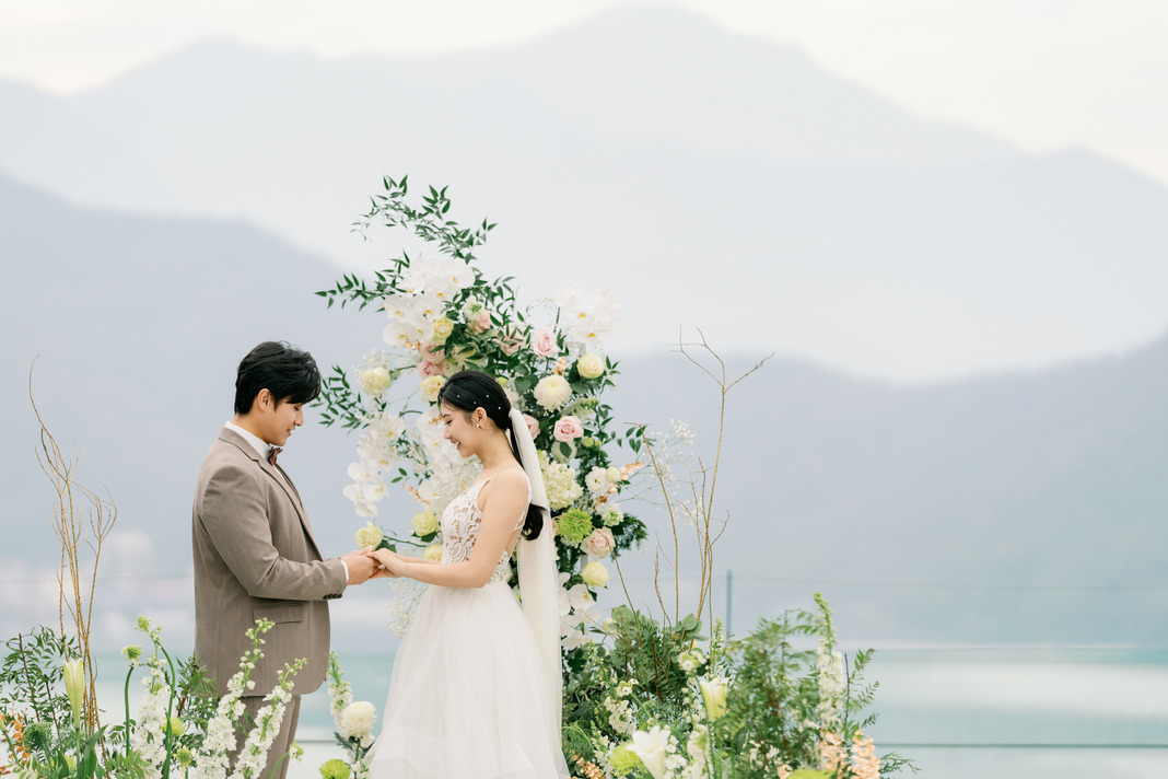 證婚專案—點亮你的專屬「證婚」儀式感—日月潭光影交錯的靜謐時刻,讓愛的誓言於天地間回響;坐擁全台唯一270度,遼闊無遮蔽的日月潭壯麗景色。微光囍宴,讓每一位親友沉浸在自然與情感交融的見證時刻中,感受愛最純粹的悸動。