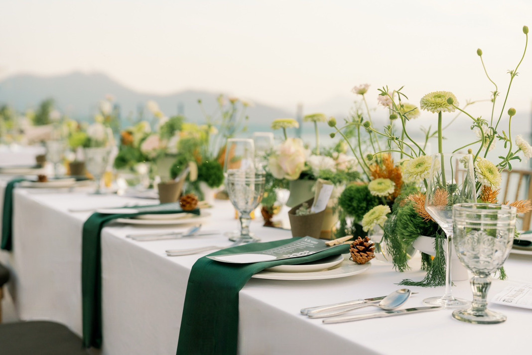 —在落日餘光,譜一場優雅的西式晚宴—夕陽餘暉斜灑波光,宛如金紗輕覆,為幸福時刻鍍上一層最動人的光影。從香檳派對的輕盈揭幕、晚宴的溫馨時刻,到微光延續的 After Party,為您獻上一場從景色到滋味都無可取代的浪漫饗宴。